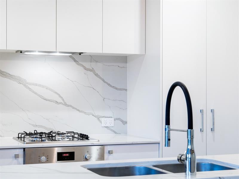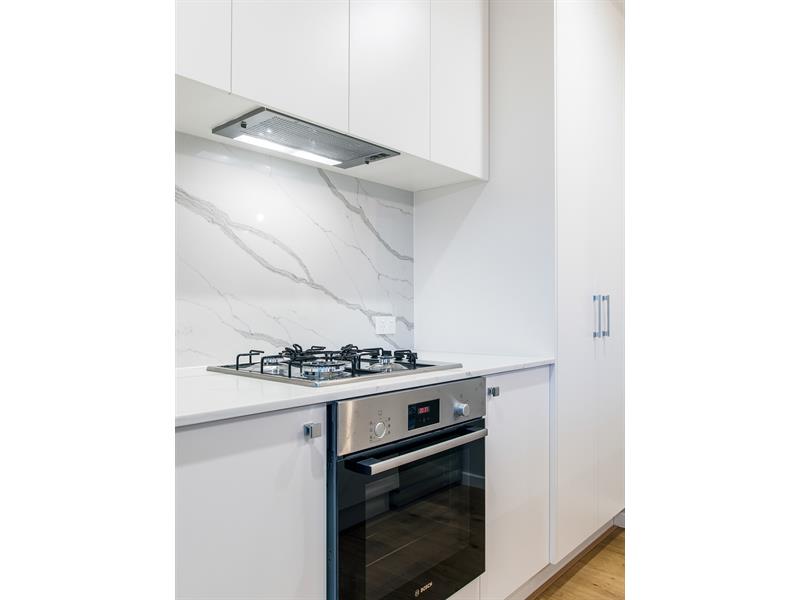 Step into a lush oasis adorned with European timber flooring and expansive sliding doors that create seamless indoor-outdoor living. At the heart of your home, the designer kitchen features extensive stone finishes, state-of-the-art Bosch appliances, ample storage, and bespoke feature lighting, making it the perfect space to entertain.