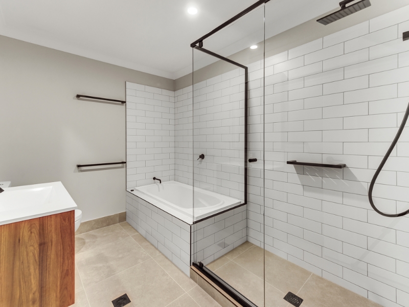 - Modern bathroom with bath upstairs + ensuite off master bedroom