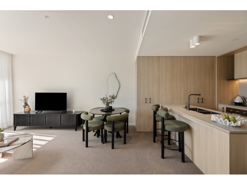 Achieve a balanced lifestyle with the rooftop wellness facilities, curating your own personalised wellness experience. Indulge and unwind in the idyllic space designed for your health and well-being. The facilities include a private dining area, cinema, gym, yoga studio, sauna, steam room, hot and cold plunges and a 25m heated lap pool.