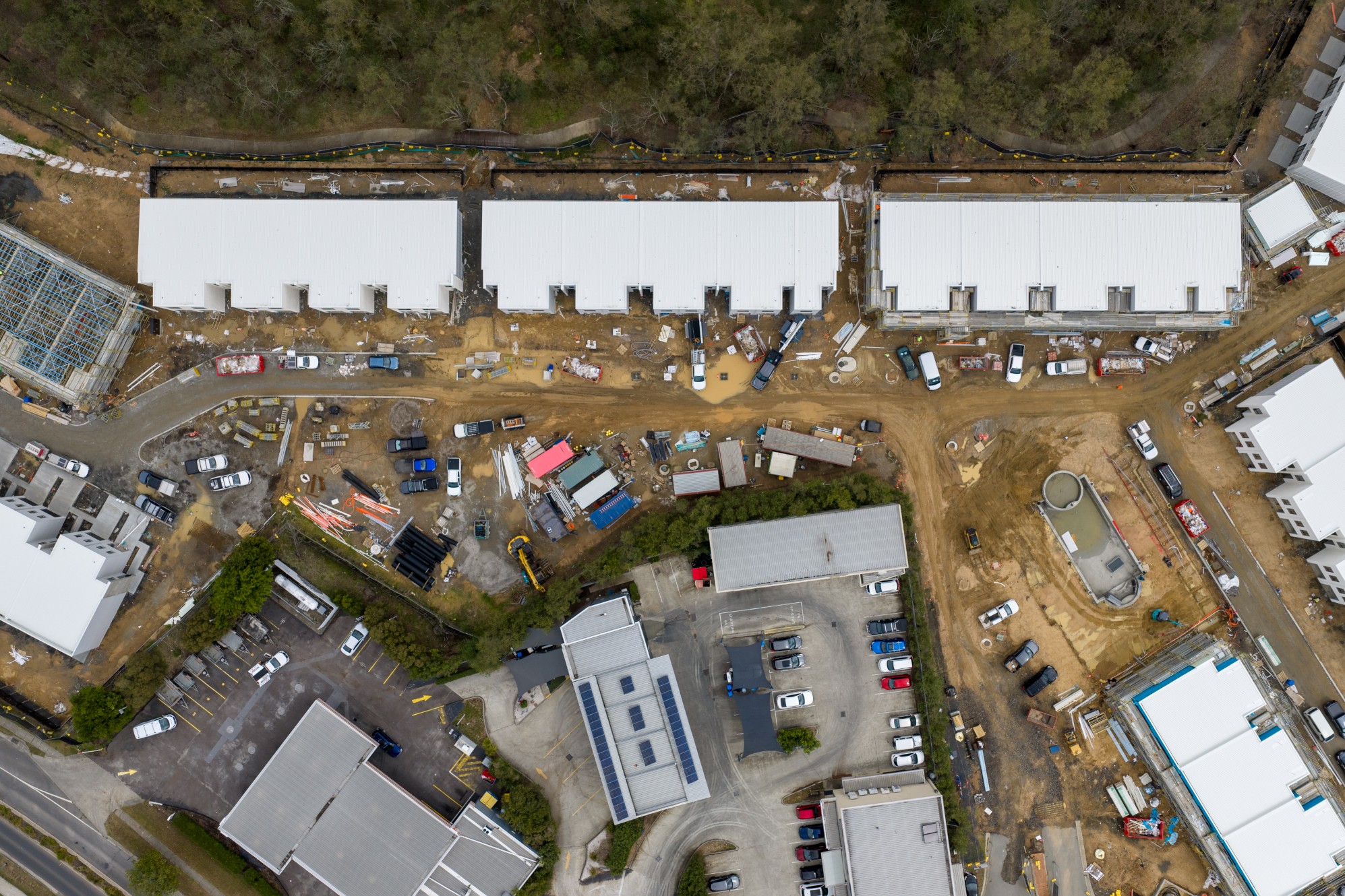 A key highlight this month has been the completion of roofing, allowing trades to move into the final stages of internal works. An item of interest is the growing momentum around the communal area, where blockwork to the bio basin is now complete and the spaces surrounding the pool are beginning to take shape.