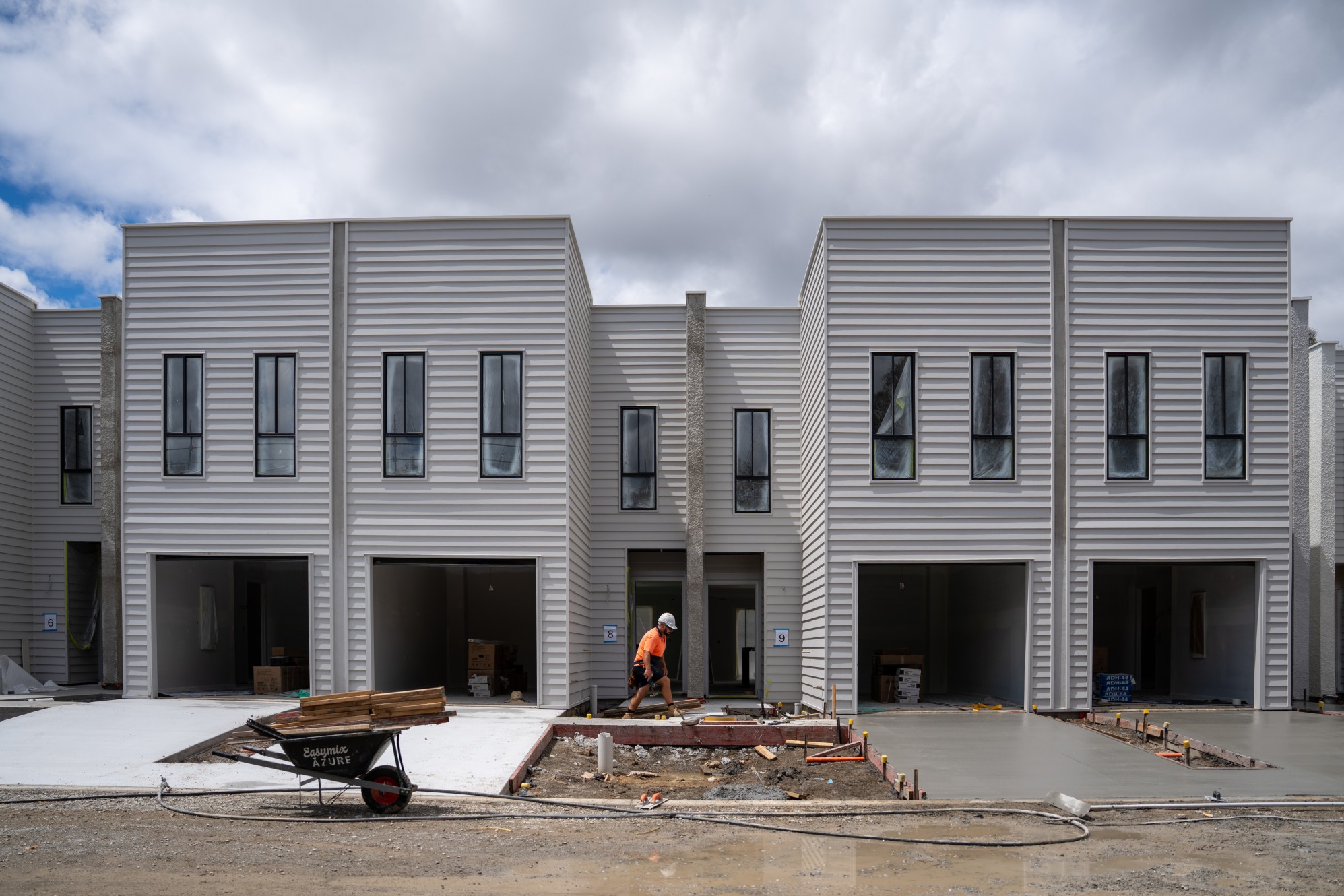 Internal works are progressing steadily, with render now 60% complete, plasterboard sheeting, setting, and sanding finished across 75% of terraces, and cladding now 75% complete site wide.