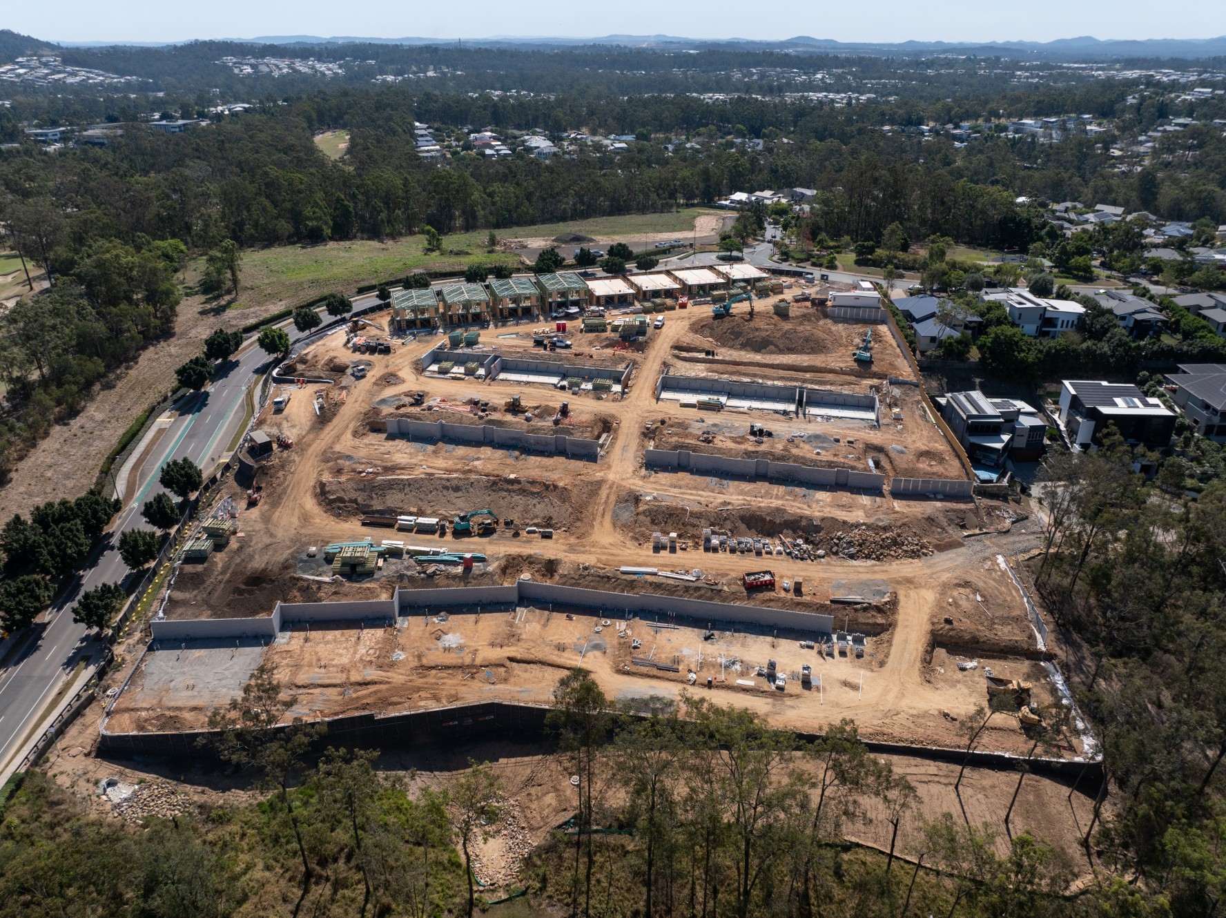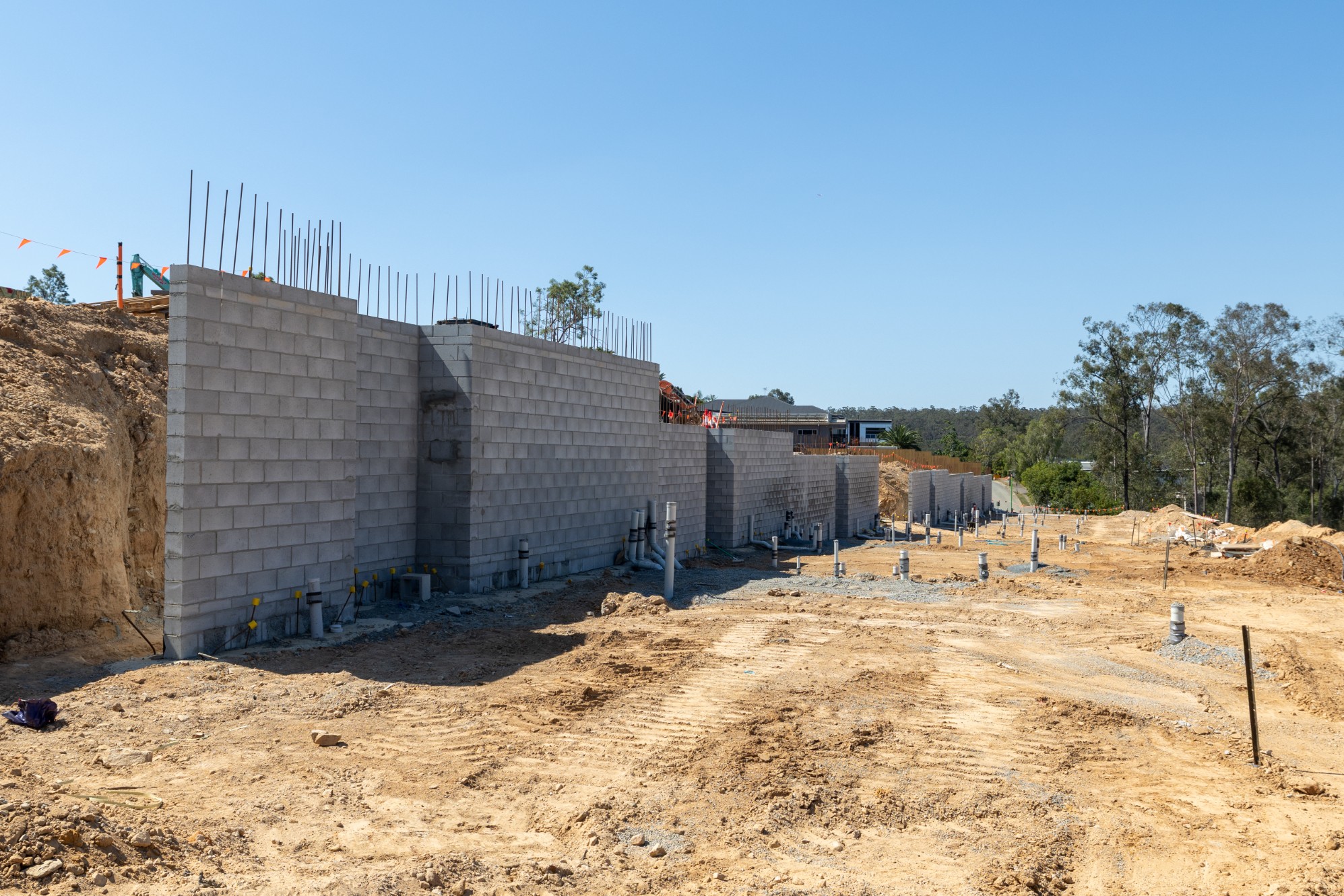Underslab services have now been completed for Terraces 1 to 15, with slab preparation underway to support the next stages of construction. Civil retaining wall works are continuing across the site, shaping the landscape and defining key structural areas.